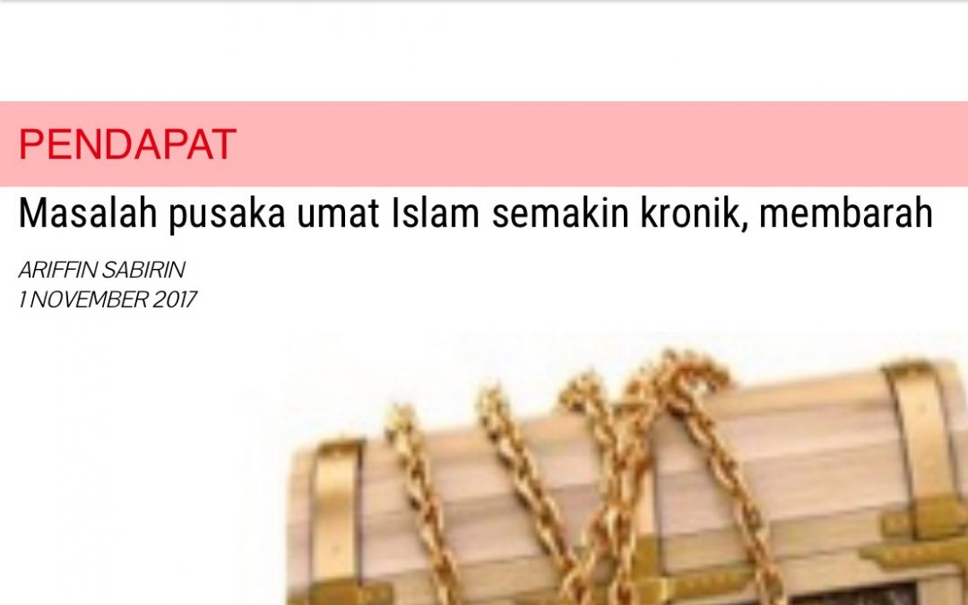 SAYA telah bekerja membantu umat Islam menyelesaikan isu pusaka dan perancangan harta pusaka mereka masuk tahun yang ke-20. Saya mendapati masalah pusaka yang melanda umat Islam hari ini semakin lama semakin kronik dan membarah.
